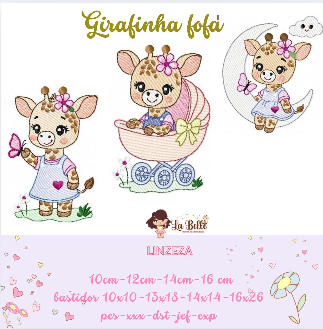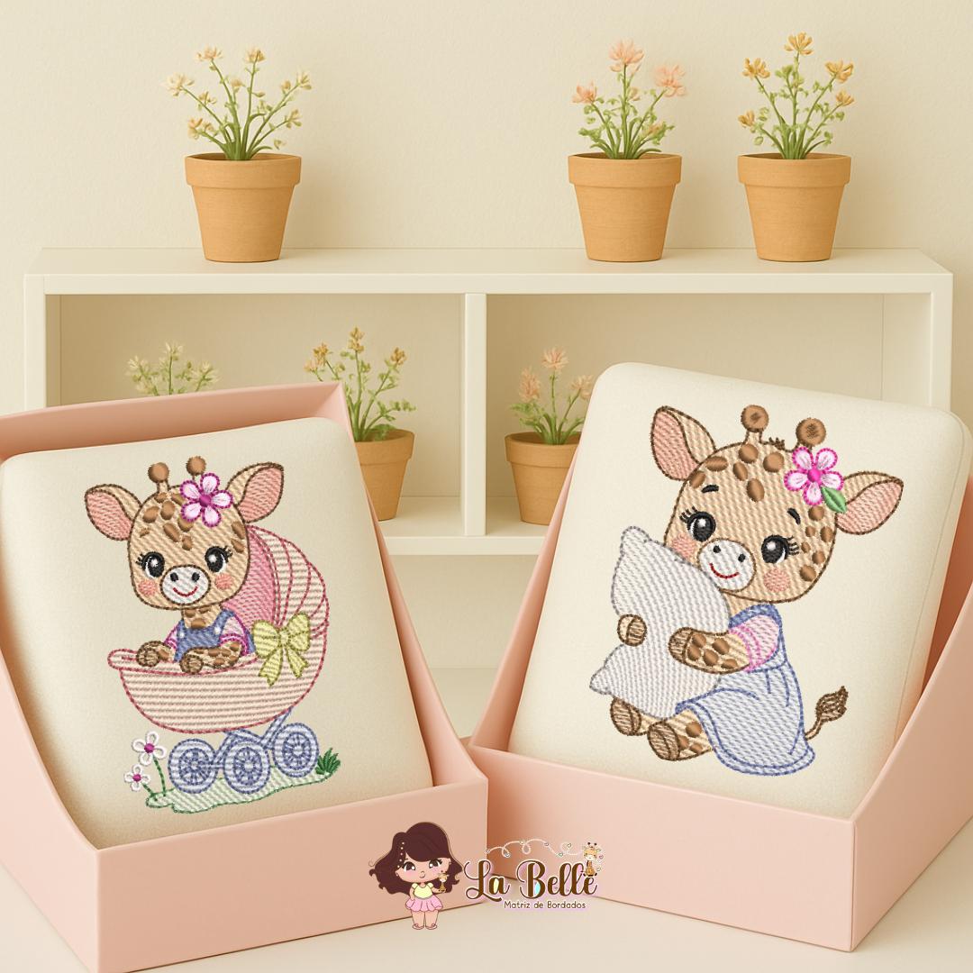 coleção de matriz girafinha fofa em pontos Rippled com 5 matrizes, linda e fofas com toque delicado e charmoso, bem infantil. ideal pra bordar fraldas, toalhas, caderneta de vacinação, bolsas etc..