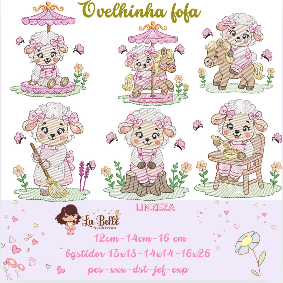 linda coleção de matriz ovelhinha fofinha em pontos leves , são no total 6 matrizes, linda e fofas com toque delicado e charmoso, bem infantil. ideal pra bordar fraldas, toalhas, caderneta de vacinação, bolsas etc..