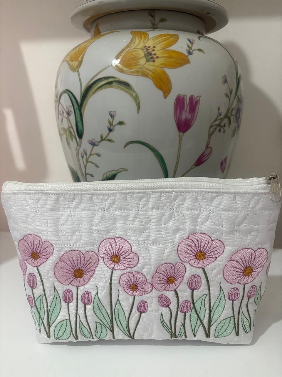 linda matrizes  de  nécessaire, com quilt e flores, em pontos leves , e as flores vai também,   separada pra  bordar na toalha, são  lindas e fofas com toque   delicado e charmoso