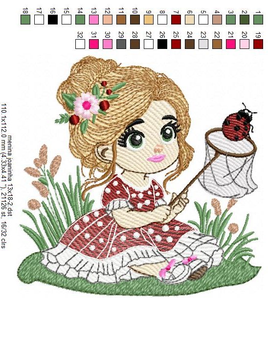 linda Meninas em pontos leves e cheio, com 6 matrizes meninas, linda e fofas com toque delicado e charmoso, bem infantil. ideal pra bordar fraldas, toalhas, caderneta de vacinação, bolsas etc..
