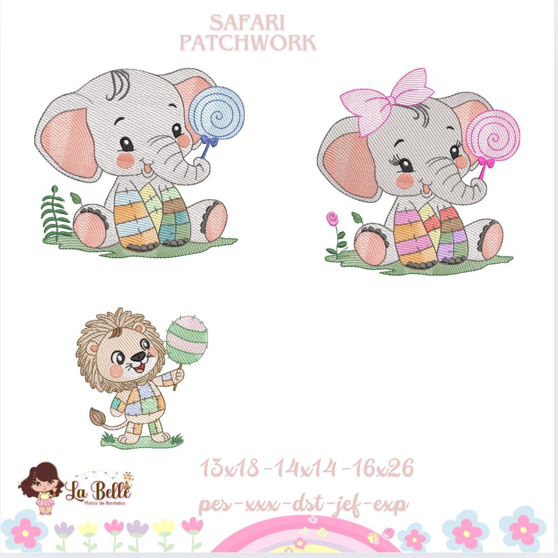 linda Coleção Safari Patchwork em pontos leves,  são 7 matrizes,  são lindas    fofas, bem infantil. ideal pra bordar fraldas, toalhas, caderneta de vacinação, bolsas etc..