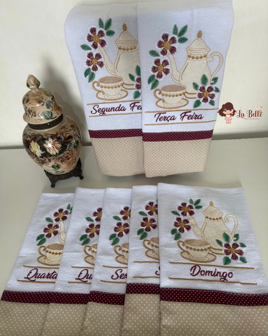 Linda coleção Semaninha Floral em pontos leves , com 7 matrizes, linda ideal pra bordar pano de copa