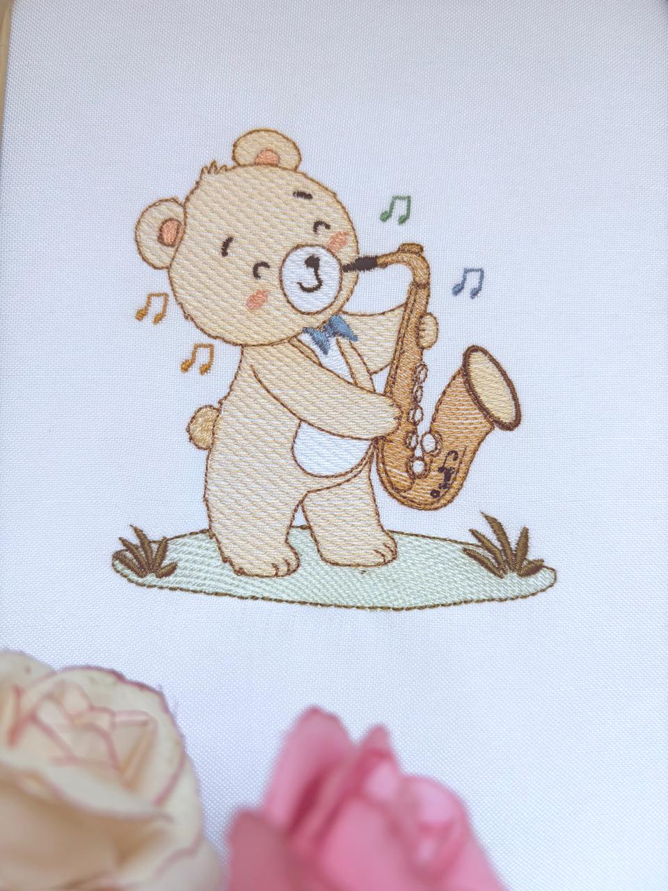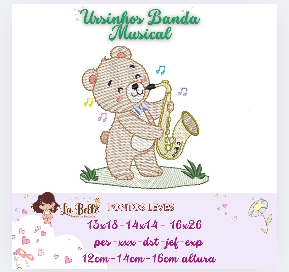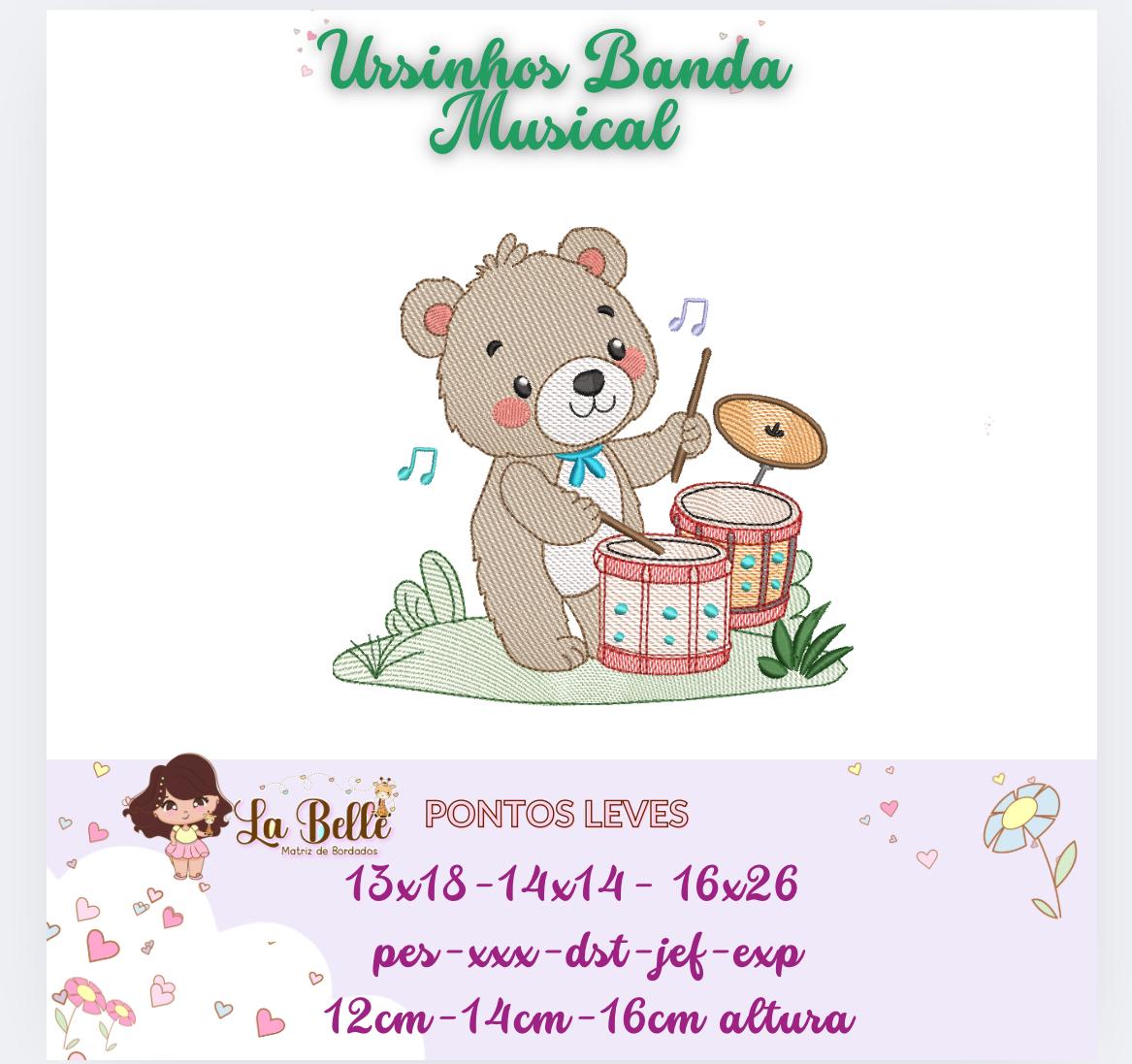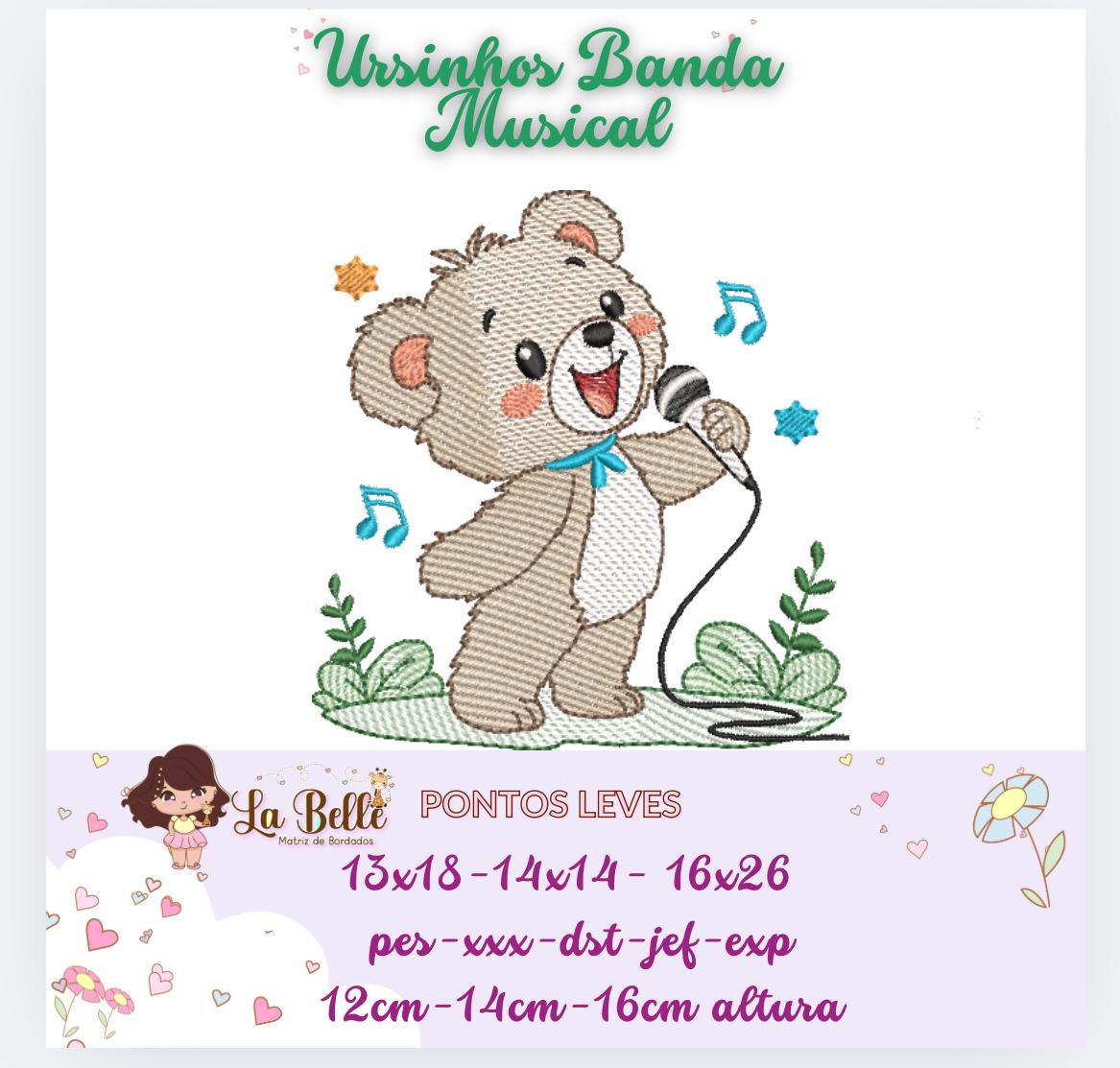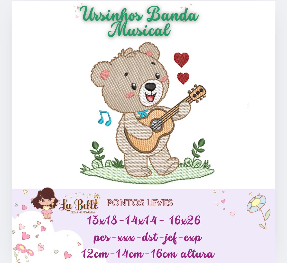 linda matriz ursinhos Banda musical, em pontos leves e cheio, com 4 matrizes, linda e fofas com toque delicado e charmoso, bem infantil. ideal pra bordar fraldas, toalhas, caderneta de vacinação, bolsas etc..